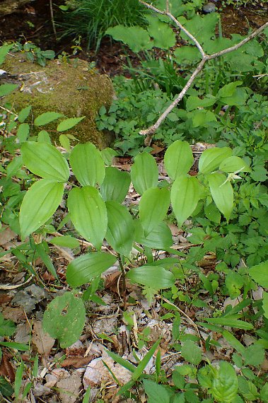 チゴユリに似ているが、草丈は40〜70センチで大型、上部でよく分枝する。 花被片も大きく、白色でやや緑色を帯びる。花糸と葯、子房と花柱は同長。花期は4〜6月。北海道、本州北部、関東、中部地方に分布する。 〜徒然想〜 チゴユリとは背丈や花の付き方が異なり、チゴユリと見間違うことはありません。上部でよく分枝します。 チゴユリは奥多摩や高尾の登山道の脇で頻繁に出逢えますが、オオチゴユリには出逢の機会がありませんでした。 新潟県です。これならばオオチゴユリと呼んでいいのではないでしょうか。40センチほどの背丈のものがずらりと並んでいます。 植物園で見たものよりも多少小振りのような気もしましたが、奥多摩などでよくみられるチゴユリは、せいぜい高さ20センチほど、格段に違います。 高崎の山を訪れたときは既に花が終わっていただけに、新潟県では花を複数付けている個体を探して、ワクワクの撮影になりました。 なお、茎が分枝しそれぞれに花を付けるものをエダウチチゴユリと呼びますが、分けません(上記左の画像)。 −同じ科の植物− |