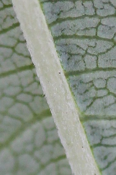 高原の草地などに生える多年草で、高さは1〜1.5メートル。茎は直立して分枝しない。葉は互生し、長披針形、全縁で裏面は白色を帯び、脈上に曲がった短毛がある。葉裏は白く、無毛。