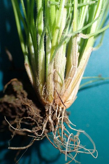 | 全体に毛が多く、葉鞘部でも目立ちます 葉鞘基部はやや褐色を帯びます | ||