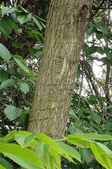 湿気の多い山野などに生える落葉高木で、高さは10メートルほどになる。葉は互生し、奇数羽状複葉、5〜9対の小葉からなる。小葉は楕円形〜長楕円形、先は鋭く尖り、基部はやや歪んだ切形〜円形、縁には尖った細鋸歯がある。葉柄や葉軸には褐色の軟毛や腺毛が密生する。