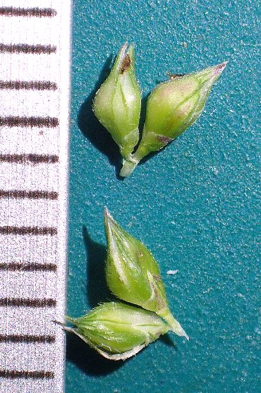 | 小穂第1小花の護頴(内頴)は膨らまず平らです 先は尖りますが、芒になりません(微妙なものもありました) | ||