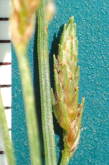 小穂の鱗片が伸び、開出気味と思いそうしたのですが、アゼテンツキはもっと鱗片が長く、明確に斜開出するようです。