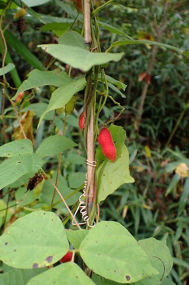| 豆果は扁平な楕円形で、熟すと赤くなり、種子は黒くなります 種子はふつう2個ですが、1個もあります | ||