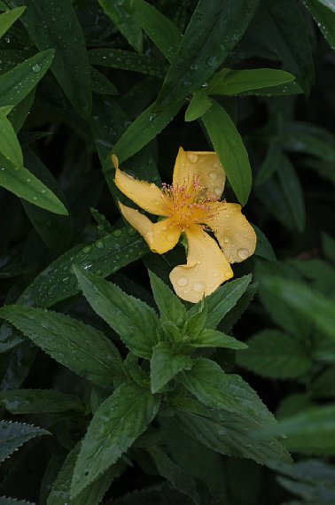 山地や高原などの日当たりのいい所に生える多年草で、高さは50〜130センチ。茎は直立して上部で分枝する。葉は対生し、披針形で先は尖り、基部は半ば茎を抱く。葉に黒点はない。 花は一日花で、枝先に集散花序に付き、黄色、直径4〜6センチ。花弁は5枚あり、ねじれて巴形になる。花期は7〜8月。北海道〜九州に分布する。 〜徒然想〜 八ヶ岳山麓や周辺の高原でよく見かけていましたが、花弁が濡れたり、きれいな巴形になっていなかったりで、アップできる画像がありませんでした。そのうちまた出逢えるだろうと、のんびり構えていた花です。 伊吹山山頂の一角に一塊りのこの花がありました。花の多くはすでに痛み、かろうじて巴形が残っている花を選んで撮影します。 虫たちも形のいいのが好きなのか、頻繁にファインダーに飛び込んできます。留守の間に、シャッターを押します。 −同じ科の植物− |